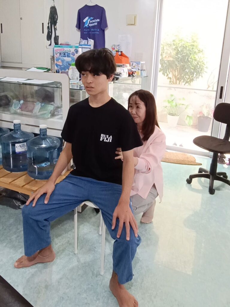 途中から椅子に座って呼吸の確認も行いました。