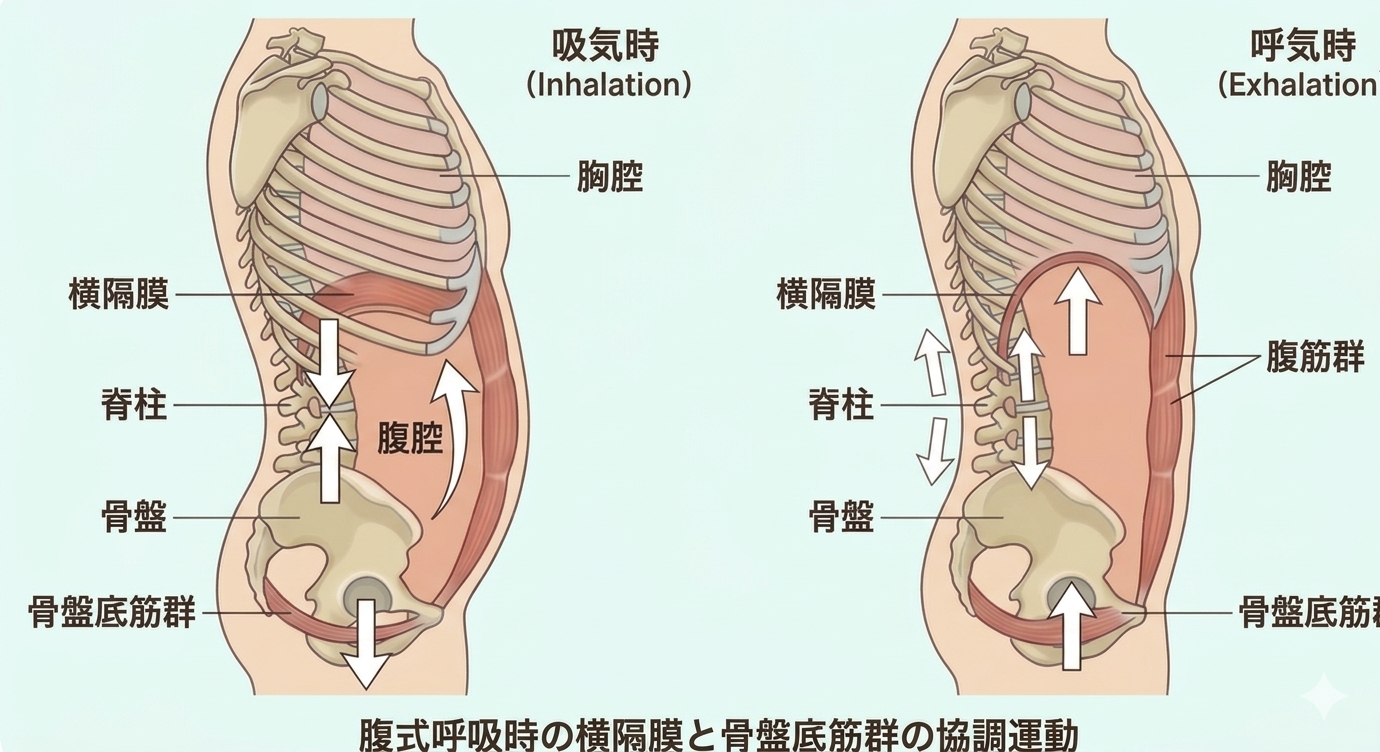 腹式呼吸とは“横隔膜と骨盤底筋群の連動”で成立しています。
